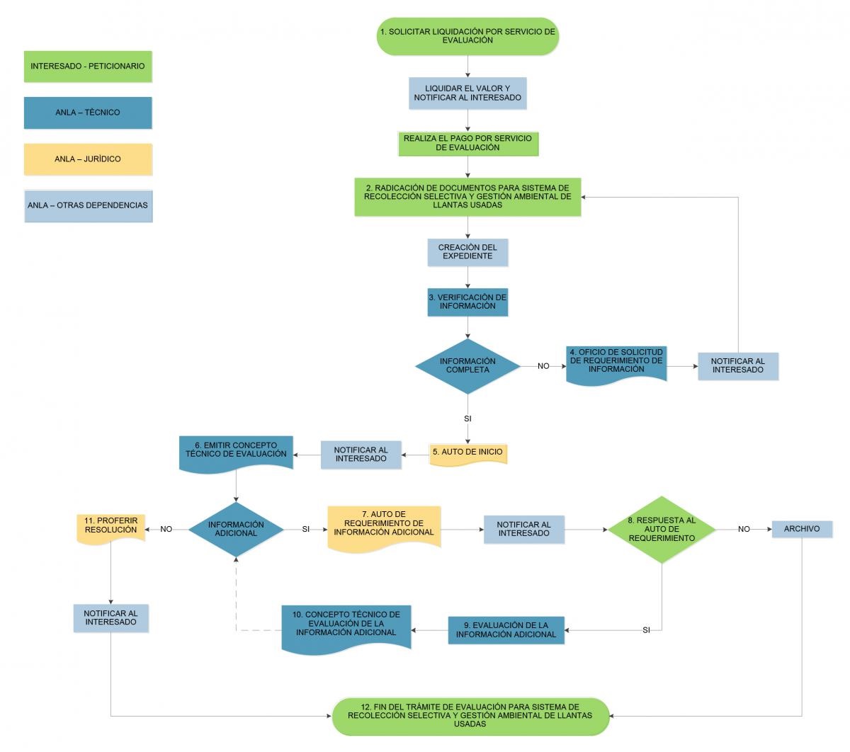 A continuación, se presenta el flujograma del proceso que se surte al interior de la entidad para la etapa de evaluación de los Sistemas de Recolección Selectiva y Gestión Ambiental de Llantas Usadas.